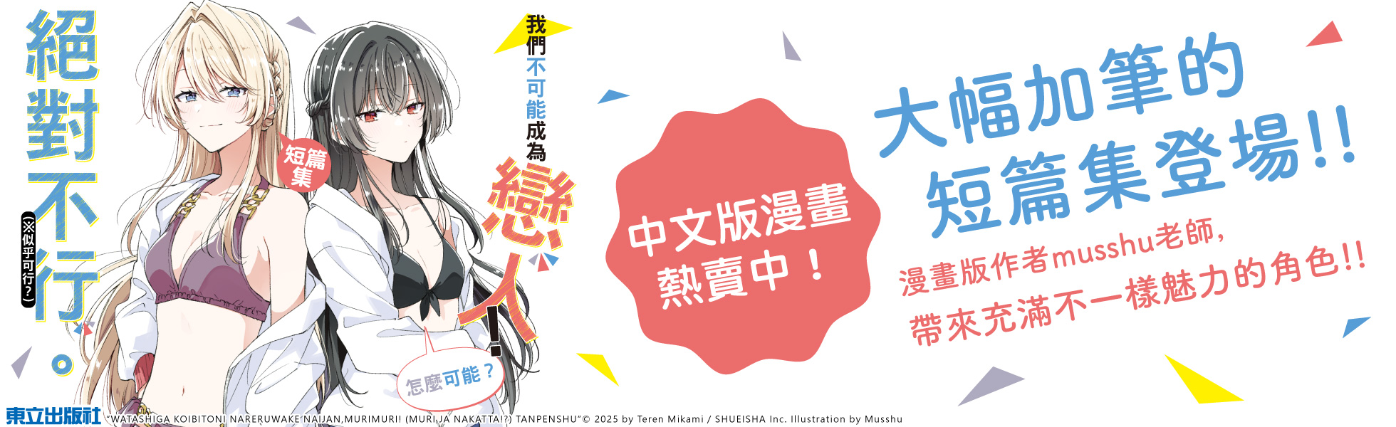 凝聚五重奏魅力的精選短篇集!本書不僅收錄了《我戀不行》原作官網公開的『我怎麼可能成為好學妹嘛!絕對不行!(※似乎可行!?)』、『紗月同學的粉絲信』前後篇,還有兩篇全新撰寫的短篇,分別是描寫紫陽花同學參加學生會選舉的『瀨名紫陽花與學生會選舉』前後篇,以及以真唯的隨從花取單衣視角展開的『玲奈子,在泳池裡結束第二次人生。』!《我戀不行》裡充滿各種魅力的女孩們為內容增添色彩,而在這本精選短篇集當中,則是滿滿收錄了她們的內心世界與平時難得一見的可愛模樣!呈現「五重奏」在本篇幕後所發生的奮鬥與歡樂日常,超受歡迎的青春百合戀愛喜劇番外篇在此登場!
