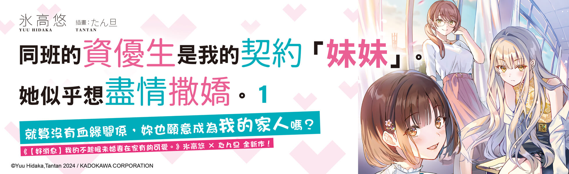 ★第26屆Fantasia大賞「銀獎」作家?高悠全新作! ★前作《【好消息】我的不起眼未婚妻在家有夠可愛。》系列累積發行逾20萬冊(截至2023年6月)。 ★從「家族契約」開始的同居系戀愛喜劇! 我,鷹戶流希因為和父親關係不好而離家出走,結果被同班同學加古川青緒撿回去。我和青緒締結了某個「契約」,那就是……成為她的家人並一起生活!「哥哥~~現在沒有別人,讓我充電一下!」青緒在學校是資優生,回到家卻超級依賴我這個「哥哥」!不僅如此,平時害羞內向,但其實很想照顧人的妹妹絆菜,還有青緒的表姊──在學校很受歡迎的老師優香里,加古川家這三位美少女都開始向我撒嬌……雖然是奇妙的關係,日常生活卻充滿樂趣,令人興奮不已!成為「家人」後,戀情開始萌芽。溫馨的同居系戀愛喜劇!©Yuu Hidaka,Tantan 2024╱KADOKAWA CORPORATION