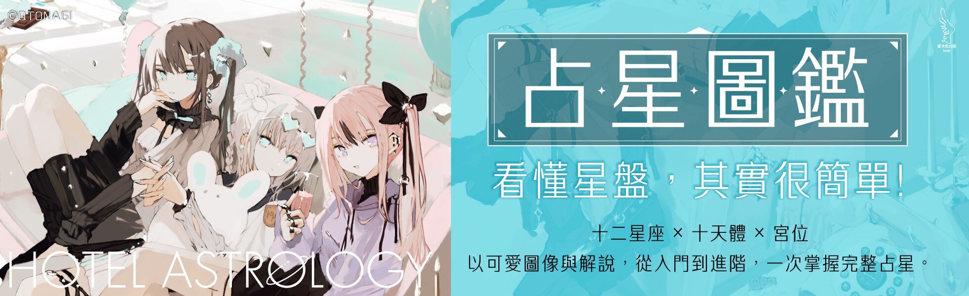 ☆ ~歡迎光臨,入住星座旅館~ ★\用最直覺的方式,從零開始看懂星盤/在這裡,每一個星座都是一個房間,每一顆行星都是一位住客,而你的人格、情感、欲望與行動軌跡,正由星星們共同編織。你是否曾經疑惑:為什麼自己有時像獅子,有時卻像雙魚?為什麼有時熱情主動,有時卻只想躲起來?為什麼在不同關係中,自己彷彿換了一個人?◆ 占星不是迷信,而是一種理解自己的工具作者在插畫創作之外,也長期鑽研西洋占星術,並在實際學習與使用的過程中,深刻感受到占星的幫助,因此希望把「如何享受占星」這件事,交到讀者手中。在作者的觀點裡,占星不是用來替人生下定論,也不該因為星座或星盤的解讀,而讓人感到不安或受限。相反地,占星更像是一張結構清楚的觀察工具,幫助你理解自己的情緒、欲求與行動,看清自己在不同情境下,為何會做出這樣的選擇。◆ 從零開始看懂星盤,把占星用在生活裡本書從星盤的基礎結構出發,帶領讀者建立清楚的閱讀順序,理解情感、欲求與行動如何在星盤中形成。透過星座、天體、相位與宮位的整合解說,幫助你看懂內在狀態與事件發生的脈絡,而不只是停留在性格標籤。即使不知道確切的出生時間,也能依照書中的方式進行理解,讓占星成為可實際應用於日常生活的工具。◆ 不只看性格,也能用在關係與日常生活最後收錄「雙人合盤」與「每日運勢」,透過合盤解析與每日狀態的觀察,占星在這裡不再只是性格分類,而是一套幫助你看清自己在關係中的位置、調整互動方式,並做出更適合當下狀態選擇的工具。你不必把占星當成唯一的答案。將這些解讀視為一種客觀資訊,它能幫助你用更清楚的角度,看待自己與他人。本書特色◎特色 1|從零開始看懂星盤,輕鬆了解占星世界本書從最基礎的星盤結構與解讀術語開始,依序說明十二星座、十天體、相位、十二宮,以及上升點與天頂,帶領讀者一步步理解星盤。即使沒有任何占星基礎,也能看懂個人特質、情感反應與行為傾向,真正學會如何解讀一張屬於自己的星盤。◎特色 2|整合星座 × 天體 × 宮位 × 相位不同於只談十二星座的入門書,本書一次整理占星的四大核心元素:‧十天體:關係著欲求、行動‧十二星座:呈現情感與性格的表現方式‧十二宮位:指出情緒與事件容易發生的生活領域‧相位:揭示天體之間的互動關係讀者將理解,個人並非單一星座,而是由多重元素交織而成的立體人格。◎特色 3|雙人合盤 × 每日運勢,把占星落實到關係與日常生活除了個人星盤解析,本書同時收錄「雙人合盤」與「每日運勢」單元,將占星實際運用在人際互動與日常行為中。透過合盤解析,理解你在不同關係中如何回應他人、為何某些互動特別順暢或反覆受挫;再結合每日運勢的閱讀方式,學習觀察當下情緒、行動時機與生活節奏。
