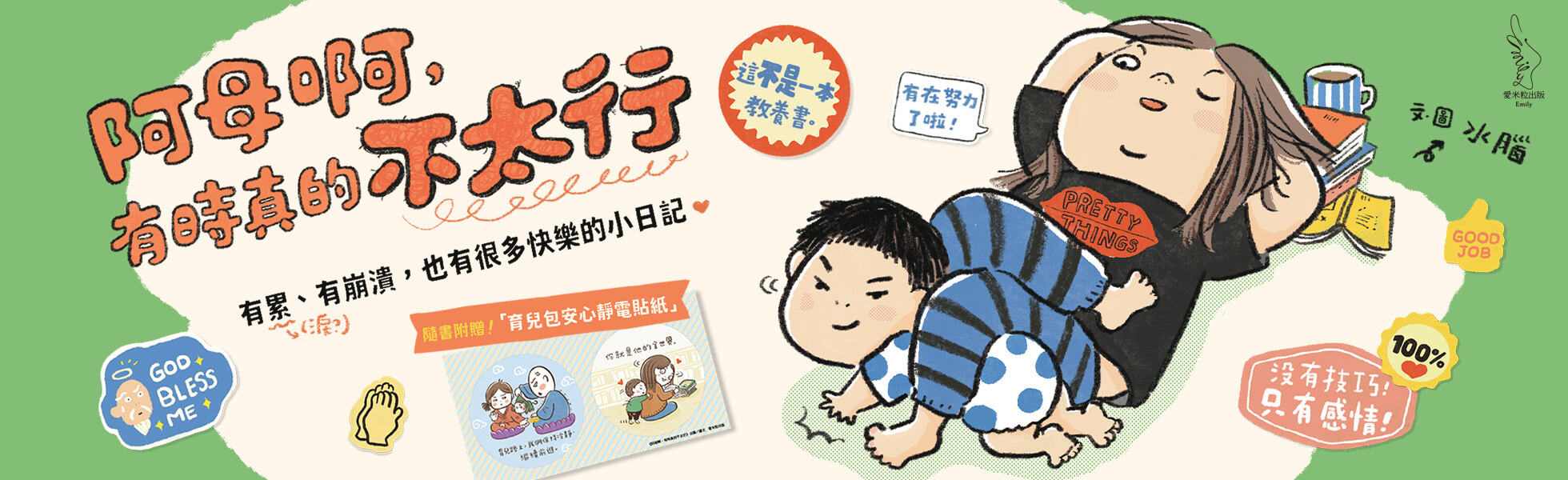 ◆隨書附贈「育兒包安心靜電貼紙」◆「雖然常出錯,但也沒打算放棄!」——水腦(本書作者,毛哥的媽媽)從天然呆少女晉身為少根筋阿母,圖文作家 水腦 以幽默又誠實的筆觸,記下從求子、懷孕到兒子毛哥出生後的各種狀況百出的時刻——當孩子比媽媽冷靜,先生比太太可靠,這位自帶「風險」的阿母,用邊走邊掉東西的節奏,走出一條不完美、但意外快樂的親子之路。育兒沒有教科書,也沒有誰真的準備好了才當媽媽。有的只是一邊手忙腳亂,一邊硬著頭皮撐下去的日常。看著看著,你可能會突然鬆一口氣:原來不用那麼會,不用那麼對,不用太優雅,離完美很遠有什麼關係,孩子還是會被好好的愛著。如果連水腦都行,請放心相信:「你現在這個樣子,也已經足夠行。」特別收錄:◆爸爸劇場:嚴厲教官 X 神(?)隊友,爸爸的功能比你想像的還要多!◆家庭小劇場之教養不同調:愛的教育 vs 鐵的紀律,夫妻教養觀大不同,網友來評評理!本書特色◆人氣圖文作家水腦首本育兒全紀錄 從天然呆少女晉身為少根筋阿母,水腦以幽默又誠實的筆觸,記下初為人母的育兒日常——笑點滿滿,真實又可愛。◆新手媽媽的安心陪伴之書 這是一本讓你放鬆、喘口氣的書,你會慢慢發現:原來不用那麼用力,也能好好照顧自己和孩子。◆隨書附贈水腦育兒包安心禮兩款作者親繪育兒金句靜電貼紙,為你在育兒路上加油打氣!