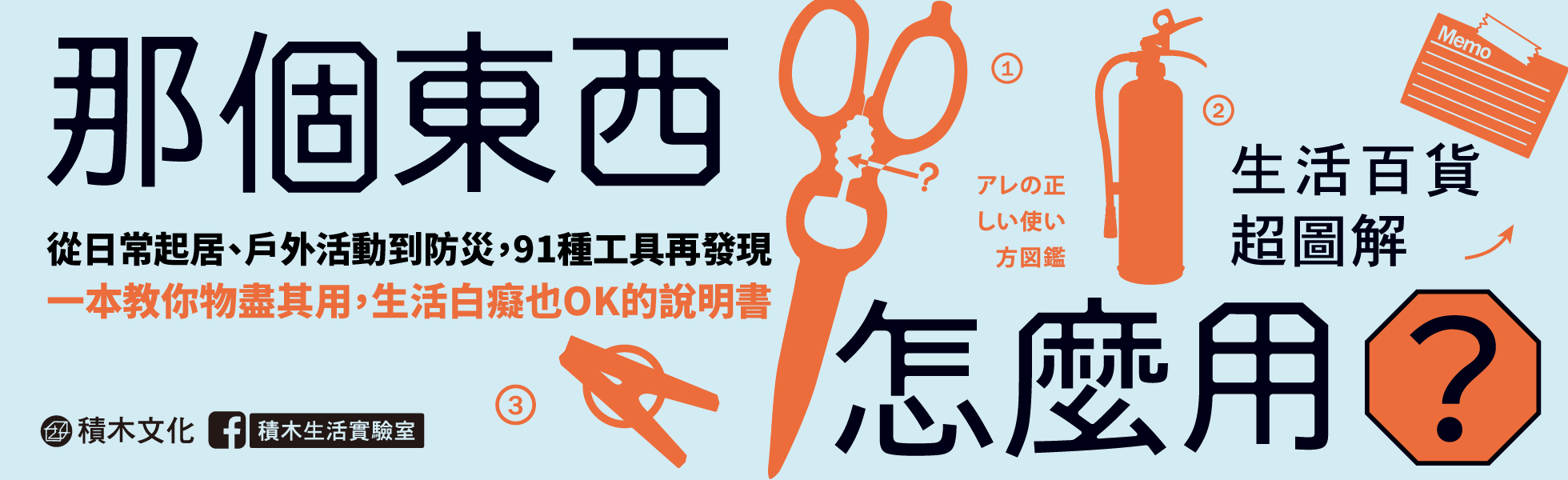 有了這本書,從此你就是生活智慧王!從日常起居、戶外活動到防災,91種工具再發現你會用,但有沒有活用?一本教你物盡其用生活白痴也OK的說明書後背包的豬鼻有什麼用?你知道如何使用計算機上的M+按鈕嗎?一把刀有多少種切法?資料夾的小三角缺口是什麼?怎樣拿紅酒杯才不NG?料理剪刀的鋸齒部分有什麼用?拐杖是要用沒受傷那一側的手拿?怎樣用刮水器清潔玻璃窗才不NG?雨傘濕透怎麼辦?便攜式簡易廁所怎麼用?怎樣用瓦斯噴槍生火才不NG?日常生活中,充滿我們不知道名稱和用法的「那個東西」,怎樣做,才OK?不想超NG?一本書收集了你可能不知道的正確使用方法!趣味知識圖文作家  10秒鐘教室(Yan)超推薦!〔辦公桌上的〕紙膠帶、透明資料夾、計算機〔調理器具的〕削皮器、蒸籠、料理剪刀〔用於飲食的〕洗指碗、蛋杯、餐巾〔浴室廁所的〕免治馬桶座、馬桶吸盤、坐浴桶〔穿著打扮的〕風衣、襯衫掛環、工作褲的綁繩〔美容、衛生用品的〕牙刷、挖耳棒、酒精消毒液、不織布口罩〔打掃、洗滌、通風換氣的〕吸塵器、刮水器、循環扇〔修繕工具的〕鐵橇、鋸子、鐵鎚〔戶外活動用的〕望遠鏡、木炭、後背包的豬鼻〔防範未然的〕手杖、救生衣、單車安全帽〔用於緊急狀況的〕便攜式簡易廁所、月牙棒、AED、救車線〔沒想到可以這樣用的〕氣泡布(泡泡紙)、報紙、塑膠袋、膠帶、長尾夾……等等91種「那個東西」了解並活用物品,是件幸福的事。【剪刀】雖然都叫剪刀,你知道正確的拿法嗎?食指別放進握柄的握孔不要把食指放入握柄的握孔,而是輕靠在下方,這麼一來能夠穩定持剪,方便操作。美髮剪美髮剪的握孔較小。使用時,將拇指和無名指放入握孔,小指放在握孔的柄腳(握柄鉤)。剪紙的方法剪紙的時候,把剪刀大幅度地張開,從刀刃根部開始往前剪。想剪的長度超過刀刃長度的話,剪的時候不要讓刀刃全部合上,中途停下來,再從根部往前剪。【筷子】失禮的筷子用法撿骨筷兩個人夾住相同料理,這是撿骨時的用法。棒棒筷用嘴舔舐筷子上的食物。平行筷用餐過程中把筷子放在餐具上,請置於筷架。飄移筷不知道要吃哪一道菜,筷子在料理上到處移動。撥雲筷用筷子把餐具拖到自己的前方,請用手挪動餐具。刺刀筷用筷子戳刺食物。【工作褲的綁繩】側邊口袋露出來的兩條繩子有何用途?腿受傷時,當作止血帶原是美軍在穿的工作褲,口袋裡的繩子是受傷時用來止血,或夜間作戰時綑綁口袋裡的物品,避免發出聲音。現在已是時尚單品的工作褲,穿的時候,繩子直接垂在外面。【新衣服附的小碎布】不只是衣服破損時用來修補的布用於試洗或測試去漬新衣服除了會附備用鈕扣,也會有一小塊布(備用布)。一般人認為那是衣服破損時修補用的布,其實主要用途是試洗,可測試掉色或縮水、受損狀態。【吹風機】頭髮柔順不打結,你很會用吹風機嗎?從髮根吹到髮尾使用吹風機時,從髮根吹到髮尾。手指插入髮根,從髮根撥動頭髮,讓吹風機的風均勻吹至髮尾。這時候,吹風機不要靠頭髮太近,保持10~20cm左右的距離,也不要集中吹某一處。頭髮快吹乾前,從溫風切換至冷風,讓毛孔收縮,鎖住角質層,然後梳理頭髮即完成。最後用冷風吹也有定型頭髮的效果。【吸塵器】用吸塵器打掃時,你是用自己的方式嗎?緩慢有規律用吸塵器打掃的訣竅是,慢慢從邊緣開始吸。吸頭緊貼地面向前推,再慢慢往後拉,有規律地重複這樣的動作。吸地毯的時候是縱橫方向用吸塵器吸地毯時,同一處以縱向、橫向交替吸塵,就能吸除卡在纖維裡的灰塵髒污。OK背部挺直,輕輕握住吸塵器,從房間內部開始往後移動,以後退的姿勢吸地。NG以彎腰前傾的姿勢吸地,反而會讓吸力變弱,自己也腰酸背痛。而且,吸塵器過度往前推,吸頭不會貼合地板,無法順利吸除灰塵髒污。【膠帶】可當作防災用品,建議備妥在家中固定瓦楞紙箱等資材在避難所經常被當作隔板或地墊的瓦楞紙箱,用黏著力較強的布膠帶固定、連接。當作便條紙或名牌布膠帶或遮蔽膠帶可以用油性筆書寫,當作留言便條或寫上名字當成名牌使用。準備黏著力強與黏著力弱的膠帶除了黏貼、固定的用途,在發生災害避難的時候,膠帶也有許多妙用。布膠帶或牛皮紙膠帶等不同材質,以及黏著力弱,容易黏貼、撕下的遮蔽膠帶等,多準備幾種不同的膠帶就能有備無患。黏貼袋子或紙張將袋子固定在牆上當作垃圾桶,或是把預定表或聯絡處的公告貼在牆上。處理傷口在受傷的部位包上乾淨的布,用膠帶纏緊止血。也可用來固定骨折部位的夾板。清理碎屑雜物吸塵器吸不到的地方分佈垃圾或碎屑雜物,將膠帶繞一圈套在手上,黏取清理。鞋子或衣服的簡易修補用膠帶黏貼、纏繞在破損或剝落的部分,做暫時性的修補。也可用於家具或玻璃窗破損的簡易修補。