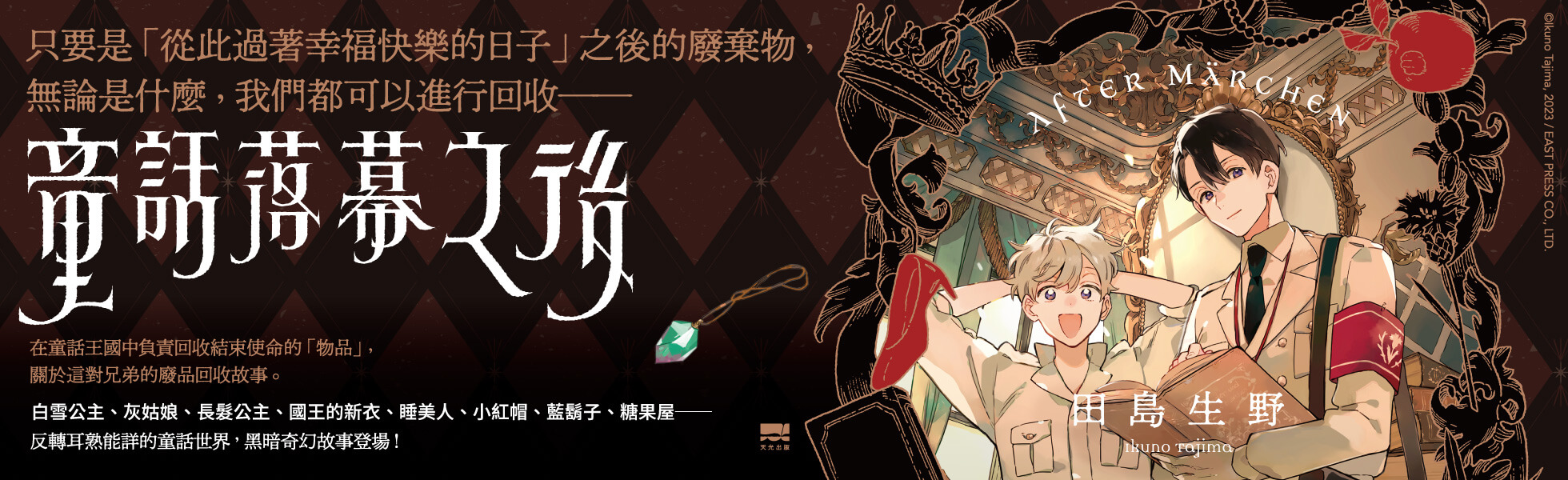 ★PIXIV「2024年度排行榜」日常.劇情部門第3名★2025年這本漫畫真厲害!女性向部門第13名★WEB THE TELEVISION「在網路上引發巨大反響的漫畫」第1名只要是「從此過著幸福快樂的日子」之後的廢棄物,無論是什麼,我們都可以進行回收──工作表現優異又照顧弟弟的好哥哥雅各布,以及十分尊敬哥哥的菜鳥新人弟弟威廉,在童話王國四處回收已結束使命的「物品」。他們所到之處,都有著因廢品回收而苦惱的委託人……以不可思議的童話世界為舞臺,黑暗奇幻故事,就此揭開序幕!【首刷贈送】「弟弟.威廉」收藏卡一張(尺寸:10.2×14.5cm)◆◇◆◇◆從登場角色(包含主角兄弟與充滿魅力的配角們)、各話的劇情編排(出人意料的「AFTER THE STORY」與漸漸浮現的謎團),到細膩描繪的畫面(所有線稿、背景、對話框皆為手繪),共同建構出一個令人沉浸其中、處處充滿吸引力的世界觀。無論你喜歡的是——童話、傳說、王子與公主、主角與反派、職場劇、人性劇,還是黑暗奇幻,都能跟隨主角兄弟踏上旅途,深入奇幻童話世界,盡情享受這段旅程!【本書特色】◆創新有趣的「童話故事下集」公主和王子共結連理,從此過著幸福快樂的日子……故事到這裡就完結了嗎?本書透過回收童話故事完結之後不被需要的物品,揭露不為人知的後續,讓讀者可以在耳熟能詳的故事中發掘耳目一新的感受。◆深刻的情感描繪時而殘酷時而溫暖的「反轉童話」,帶來強烈的情感衝擊,在童話落幕之後,角色們不再只是遵循「童話公式」活動,各種打破童話幻想的情感活躍於紙上,令人印象深刻。◆環環相扣的故事線雖然以單話完結的短篇形式進行,但每話都有不同的驚喜,同時也巧妙地將主線伏筆埋藏於各話之中,是情節緊湊且完整的佳作。◆絕美的畫風與書籍裝幀保留手繪質感的線條、每個分鏡單獨拉出來都有如明信片般細緻的插圖,以及特別加入特色印製的封面、內封,都非常值得讀者細細品味與收藏。