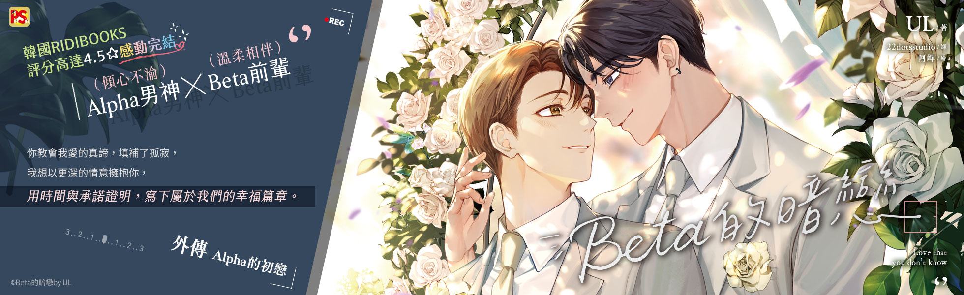 ※韓國RIDIBOOKS評分高達4.5☆大受好評,UL老師首部小說,繁體中文版 外傳感動完結💐 ※工作繁忙、無法經常相聚的新婚夫夫,當然要把握每分每秒盡情貼貼~~ ※更多兩人的甜蜜(火辣)日常,等你來解鎖🫣 ※隨書附贈珍藏電影票卡x1 韓國RIDIBOOKS評分高達4.5☆感動完結 (傾心不渝)Alpha男神 ╳(溫柔相伴)Beta前輩 你教會我愛的真諦,填補了孤寂, 我想以更深的情意擁抱你, 用時間與承諾證明,寫下屬於我們的幸福篇章。 對林泰成而言,「初戀」一詞遙遠又抽象,即使身邊從不缺乏陪伴,但大多只是隨波逐流。他也曾演出過許多愛情電影,模仿著動情的姿態,卻始終無法理解何謂真正的動心。直到遇見了勝元,他才明白,原來,一個人的心弦能如此輕易地被另一人牽動,像是找到了歸屬,從此不再感到迷惘。訂婚後,兩人決定同居,除了一起整理布置婚房、討論婚禮細節,還有第一次為戀人慶祝生日,在繁忙的工作空檔送上驚喜,那些平凡的瞬間,都讓泰成心中充滿難以言喻的悸動。曾幻想過無數次的「家」的模樣,正在他眼前閃閃發光,內心深處留下的童年遺憾也被勝元溫柔地填補,並創造出屬於兩人的嶄新回憶。如今的泰成早已體會過初戀的悸動與暗戀的酸澀,當再度面對那個曾經讓自己失措的問題時,這一次,他毫不猶豫說出了唯一的答案──