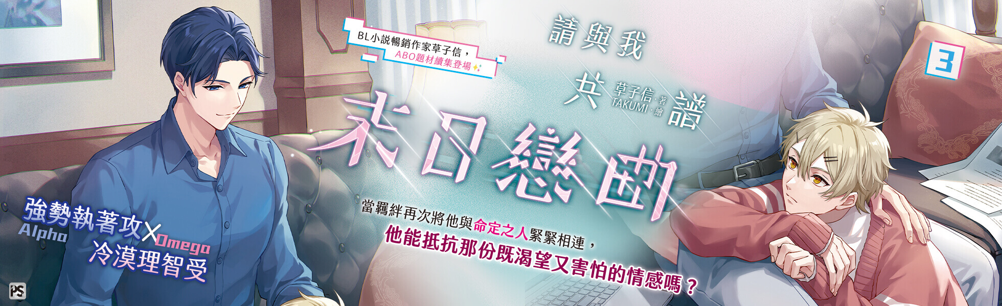 ※人氣BL小說作家草子信首部ABO長篇,第三對CP你追我逃,末日重逢,一心想遠離命定Alpha的Omega,是否依舊插翅難飛~😍 ※「膽敢盯著我的Omega?想死是不是?」死亡掃射全場,某人強勢宣示主權,與此同時,隱藏在暗處的危險亦同步升溫?!🔥 ※拍賣場上,所有人都搶破頭競拍的「變異體」──這群人到底有什麼毛病,竟然花大錢買那種要命的玩意??☠️ BL小說暢銷作家草子信,ABO題材續集登場✨ Alpha強勢執著攻╳Omega冷漠理智受 當羈絆再次將他與命定之人緊緊相連, 他能抵抗那份既渴望又害怕的情感嗎? 隨書附贈:精美拍立得收藏卡*1 三年前與薛丞光的一次視線交會,言永微發現自己竟是姊姊未婚夫的「命定之番」。為了不毀掉姊姊的幸福,他選擇逃離,以駭客身分隱匿於暗網,只想永遠避開那份強制吸引力。然而,活屍的出現讓暗網交易與現實世界危險交錯──Beta 犯罪組織、非法拍賣、活屍武器化研究……暗網遞出的神祕邀請函,竟成為兩人重逢的契機。暗網宴會上,第五項拍賣品登場,所有人都渾然不覺,唯獨薛丞光嗅到了異常──那是散發 Alpha 發情費洛蒙、能控制 Omega 的「變異體」。危險逐漸逼近,將兩人捲入更深的漩渦,言永微在彼此費洛蒙交纏的瞬間,終於認清一件事:只要薛丞光不放手,他永遠也逃不掉。