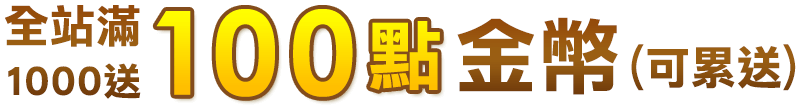 【全館同慶】單筆滿額1000元送100點金幣,可累送。