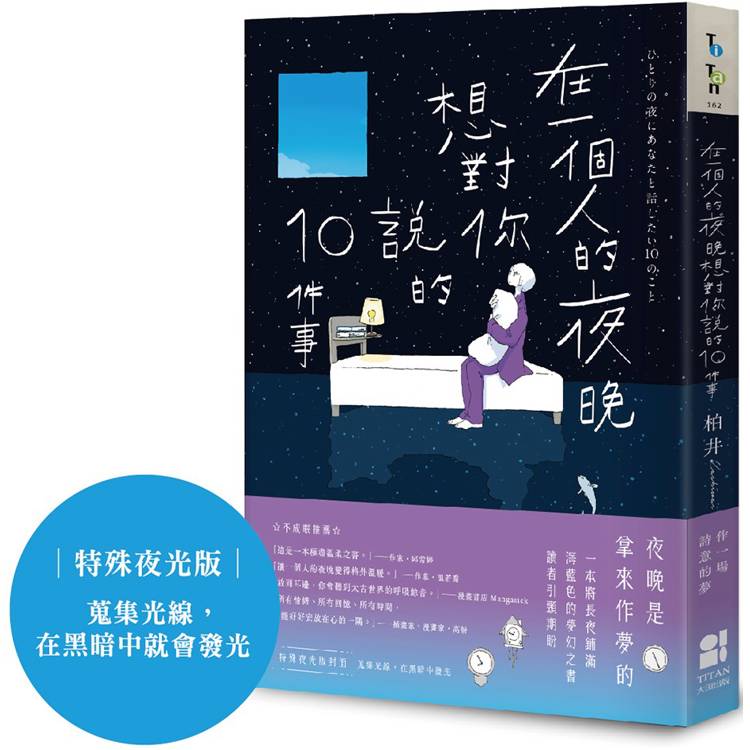 柏井Kashiwai,這個名字,其實已經在台灣的漫畫界、圖文界悄悄佔領收服許多讀者,這本《在一個人的夜晚,想對你說的10件事》是比較近期的作品,無論版面編輯與畫風,可以看到作者一貫的質感。不疾不徐,讓生活的「快」變成了「慢」,讓白天的塵囂停止在白日。夜晚要說的事與白天說的事,是不同的。柏井Kashiwai的敘述彷彿是夜晚的小精靈,了解你在夜裡的孤單,當你在夜裡被白天觸動傷心的開關,你可以試著出門去散散步,那些習慣的風景,是不是變得不一樣?每個亮著燈的窗口,伏案在桌前的身影,會不會讓你思念某個人?這些細節你會看到,關於奇想,關於沉澱,關於祝福,關於錯失。
