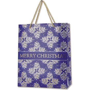 耶誕手提紙袋(大)-藍金雪花