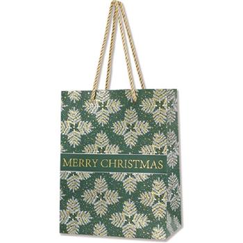 耶誕手提紙袋(中)-綠金雪花