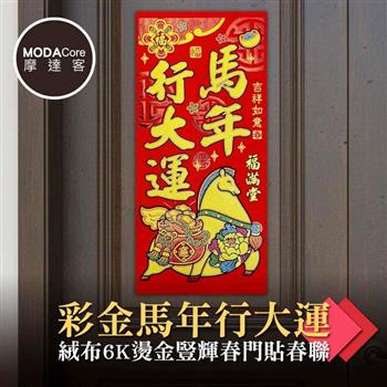 摩達客◉春節開運招財◉彩金馬年行大運絨布6K燙金豎輝春門貼春聯(單片入)