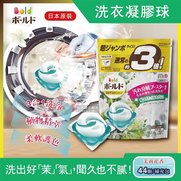 日本P&G-Ariel/Bold第五代3D立體3倍洗衣凝膠球白色茉莉花香44顆/袋(洗衣球/洗衣膠囊/洗衣膠球)