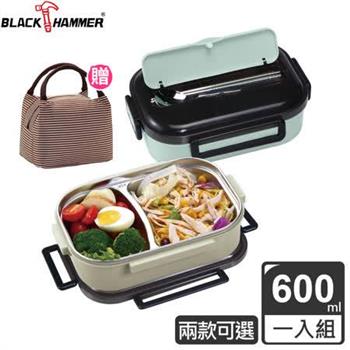 BLACK HAMMER 饗食不鏽鋼兩分隔餐盒組-兩色可選-贈保溫提袋