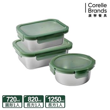 【康寧Snapware】可微波316不鏽鋼保鮮盒3入組(C06)
