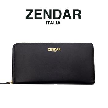 【ZENDAR】義大利精品 頂級超柔軟小羊皮拉鍊長夾 金標系列 (黑色)