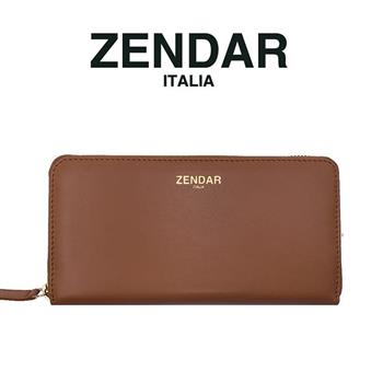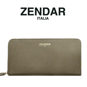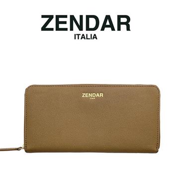 【ZENDAR】義大利精品 頂級超柔軟荔枝紋小羊皮拉鍊長夾 (駝色)