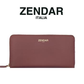 【ZENDAR】義大利精品 頂級超柔軟小羊皮拉鍊長夾 金標系列 (桃粉色)