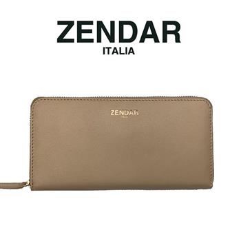 【ZENDAR】義大利精品 頂級超柔軟小羊皮拉鍊長夾 金標系列 (奶杏色)